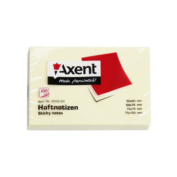 Блок паперу з клейким шаром 50*75мм, 100арк., жовтий 2312-01-А