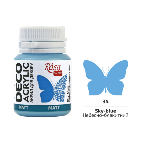 Акрил для декору 34, Небесно-блакитний, матовий, 20 мл, ROSA Talent